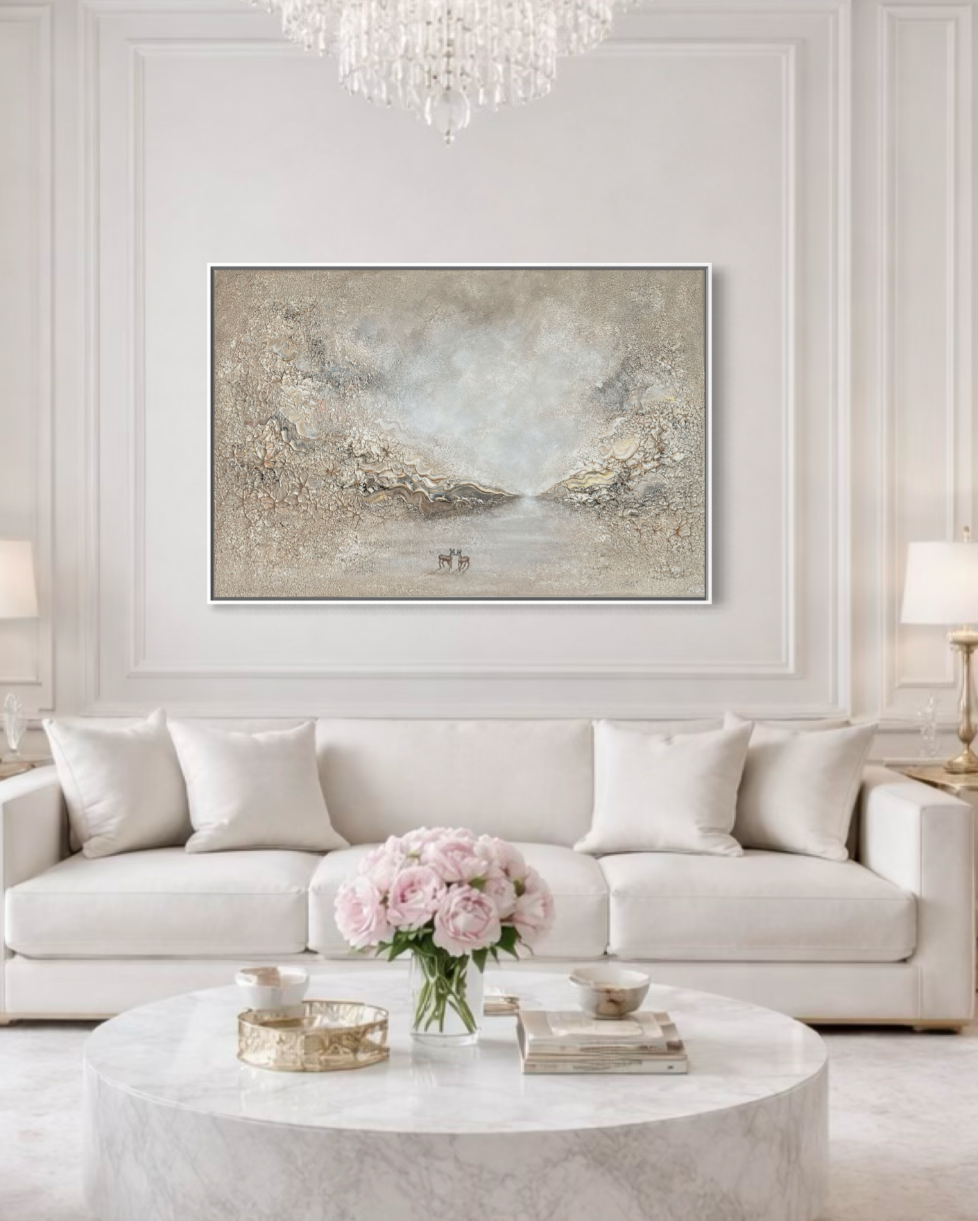 Please note colours may vary sligthly depending on the ligthning and beautiful shimmer on the painting. See all detailed pictures.