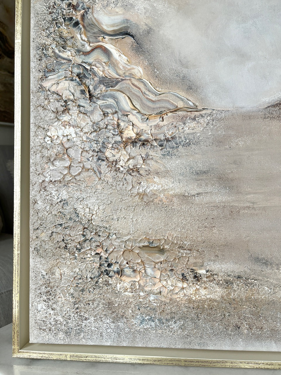 A white professionally made frame with golden edges is included in the price.